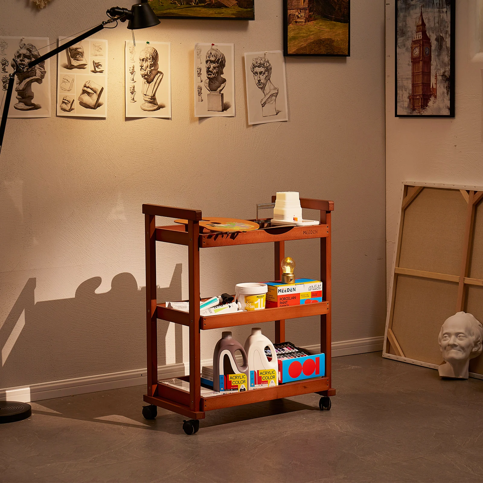 - MULTI-PURPOSE 3-TIER SHELVES: Ample storage for art supplies, canvas, brushes, paints, and everyday items, the MEEDEN cart helps studio artists, students, teachers, and amateurs keep their creative spaces organized.