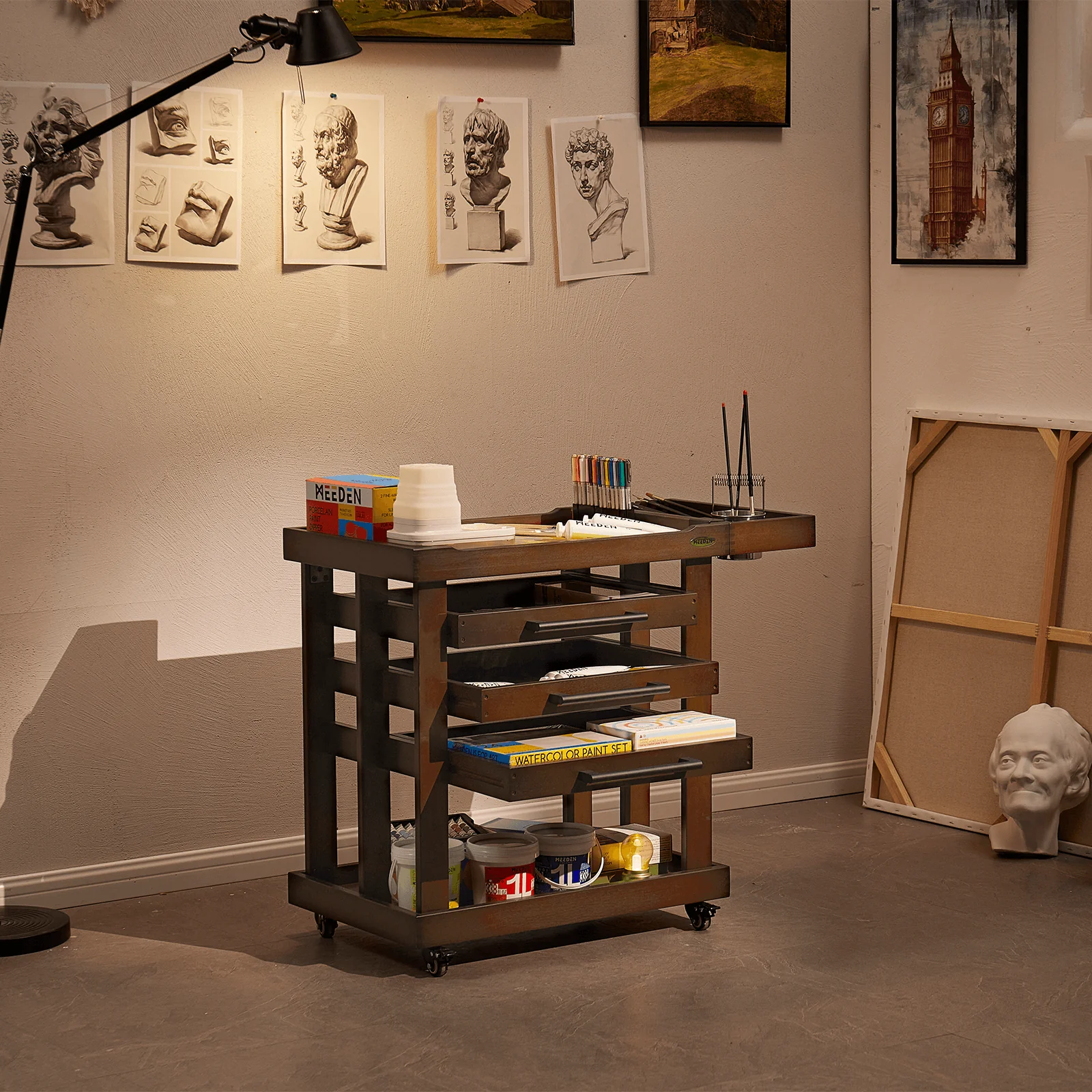 - Multifunctional Design: Come with a brush holder, store different kinds of brushes tidily. Unique round groove for inlaying brush washer, optimize creation space perfectly. Many functions in one, such as a practical and utility cart, deserve to have!